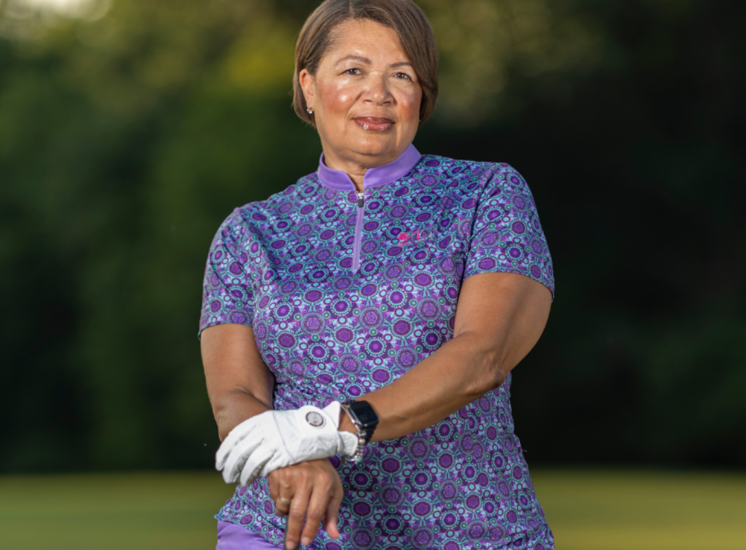 Sylvia J. I really love the pattern on this shirt and the color is really pretty and stands out on the golf course. It's stretchy. And the quality is amazing.